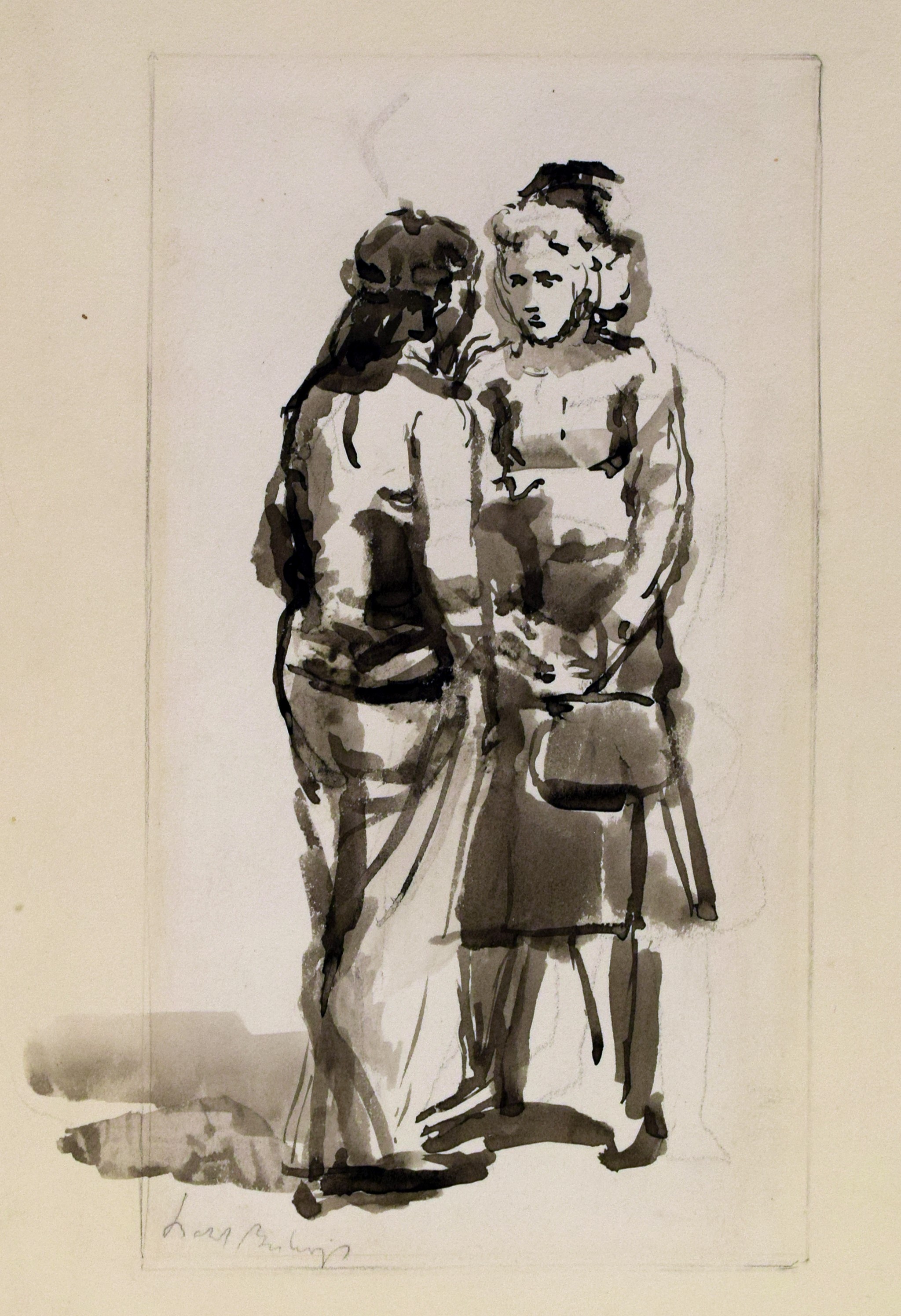 Isabel Bishop, Girl in Slacks , n.d., ink wash drawing, 18 1/8 x 13 in., Reading Public Museum, Gift of the Artist, 1962.430.1.