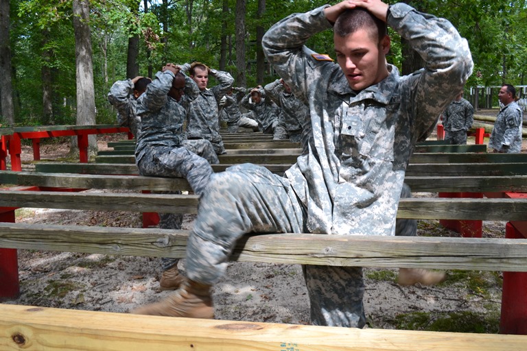 BMB Cadets Stevens and Corrigan navigate the bellyroll obsta...