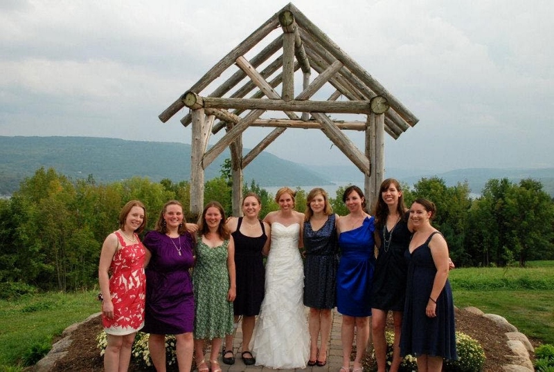 Blair Kauffmann '08 married Patrick Filmartin (Macalester '08) on Sept. 3, 2016. Pictured, from left: Heather Vincent ’08, Blair Kauffmann Gilmartin ’08, Ailey Merrick Mastantuono ’08 and Helen Li ’08.