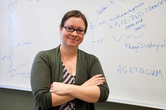 In a scientific study that connects the research areas of pharmacology, toxicology and basic biochemistry, Assistant Professor of Chemistry Rebecca Connor investigates how certain types of stress-inducing molecules, called electrophiles, chemically modify the heat-shock system and the “chaperone” proteins that are produced. Her research is supported by a three-year $217,583 National Science Foundation (NSF) grant, one of three new NSF grants awarded to Dickinson professors this year.