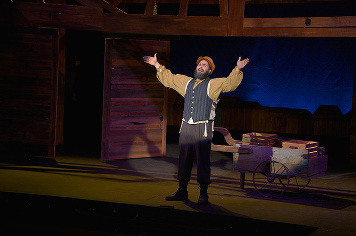 Jeremy Lupowitz '15 stars as Tevye in Dickinson's 50th-anniversary production of Fiddler on the Roof. Photo by A. Pierce Bounds '71.