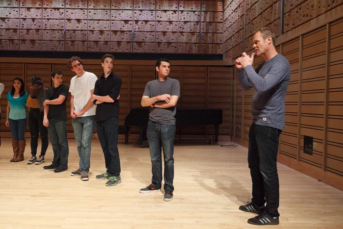 Members of Singer Pur work with students during the group's residency. Photo by Carl Socolow '77.