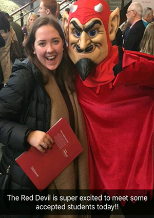 The Red Devil was on hand to welcome admitted and enrolled students during the Class of 2022 Preview Day.