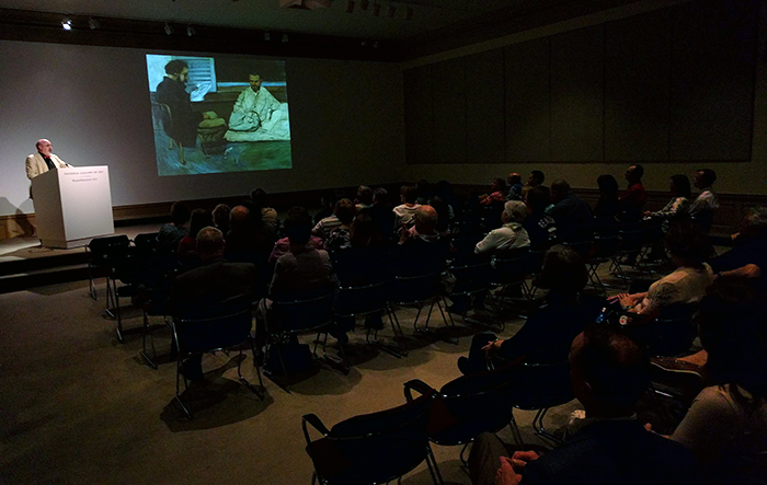Eric Denker '75, senior lecturer and head of tours at the National Gallery of Art, delivers a lecture on Cezanne's Portraits during the April 28 regional event.