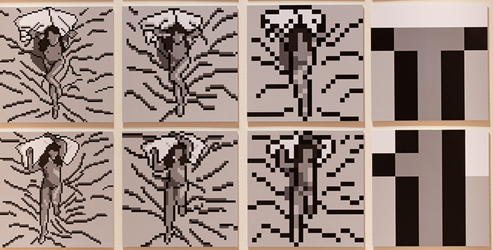 Darcy, Molly; [detail from] Bedsheets (self-portrait) 1.1-4.4; 16 digital prints. Photo by Andy Bale.
