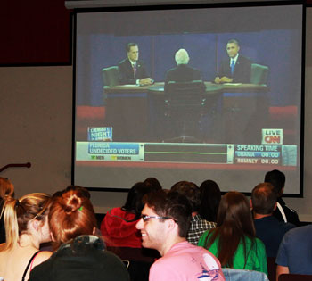 International-studies major Lauren O'Leary '13 and law & policy major MaKayla Hanington '13 report that while the televised presidential debates had left them with lingering questions, they emerged from the forum better informed. "I found that I disagree with one candidate's views on the social issues that are important to me, and this is what helped me make up my mind about who to vote for," Hanington says.
