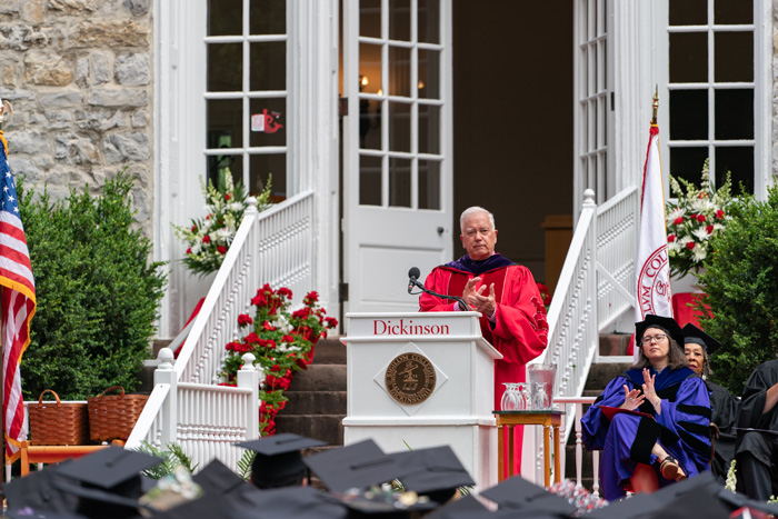 “You may not have realized it at the time, but the difficult experiences you’ve endured in these formative years have made you stronger and better prepared to engage in the wider world that you’re about to enter,” he said. “And this Dickinson community—and its president—will be behind you as a source of strength and a resource throughout your life.”